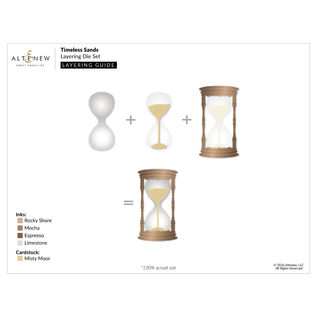 Capture the charm of days gone by with the Timeless Sands Die Set featuring a vintage hourglass design. Layer the pieces for added dimension, and complete your project with the included “timeless” sentiment—perfect for heartfelt cards or memory keeping.