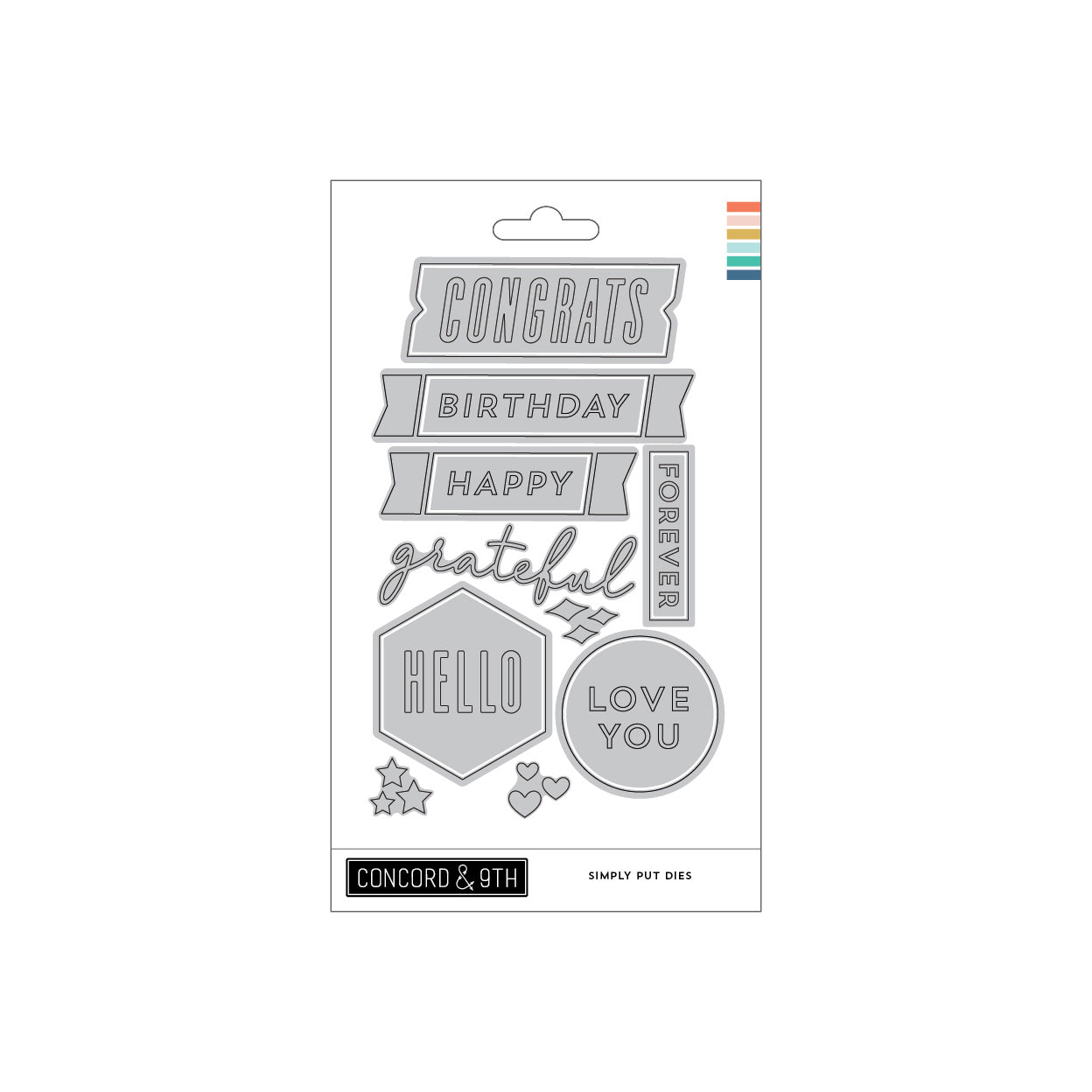 The Simply Put Dies offer a collection of sentiments designed to complement any project from birthdays to thank-yous or a friendly hello. Each sentiment includes both a drop-in and coordinating backer die for easy layering and endless and color combinations. You’ll also find several shape clusters for adding finishing touches or even creating playful confetti. 16 pieces.