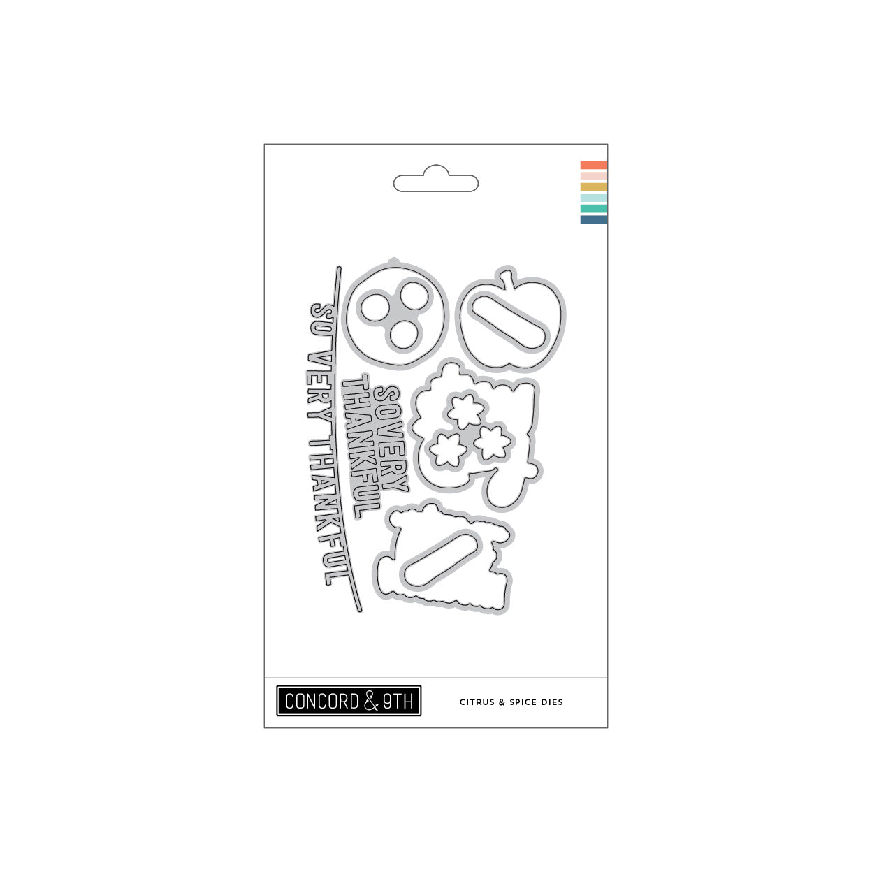 The Citrus & Spice Dies cut around the imagery created with the Citrus & Spice Stencil Pack as well as the larger, stacked sentiments in the Citrus & Spice Stamp Set, while also providing a sweet banner sentiment. 10 pieces.