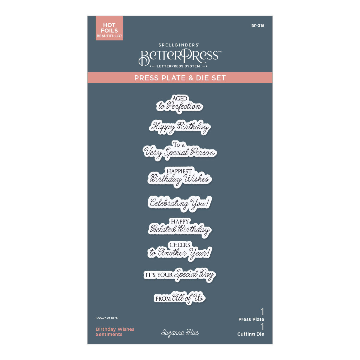 Spellbinders - Birthday Wishes Sentiments BetterPress Plate & Die Set from the Texture & Foliage Collection by Suzanne Hue
