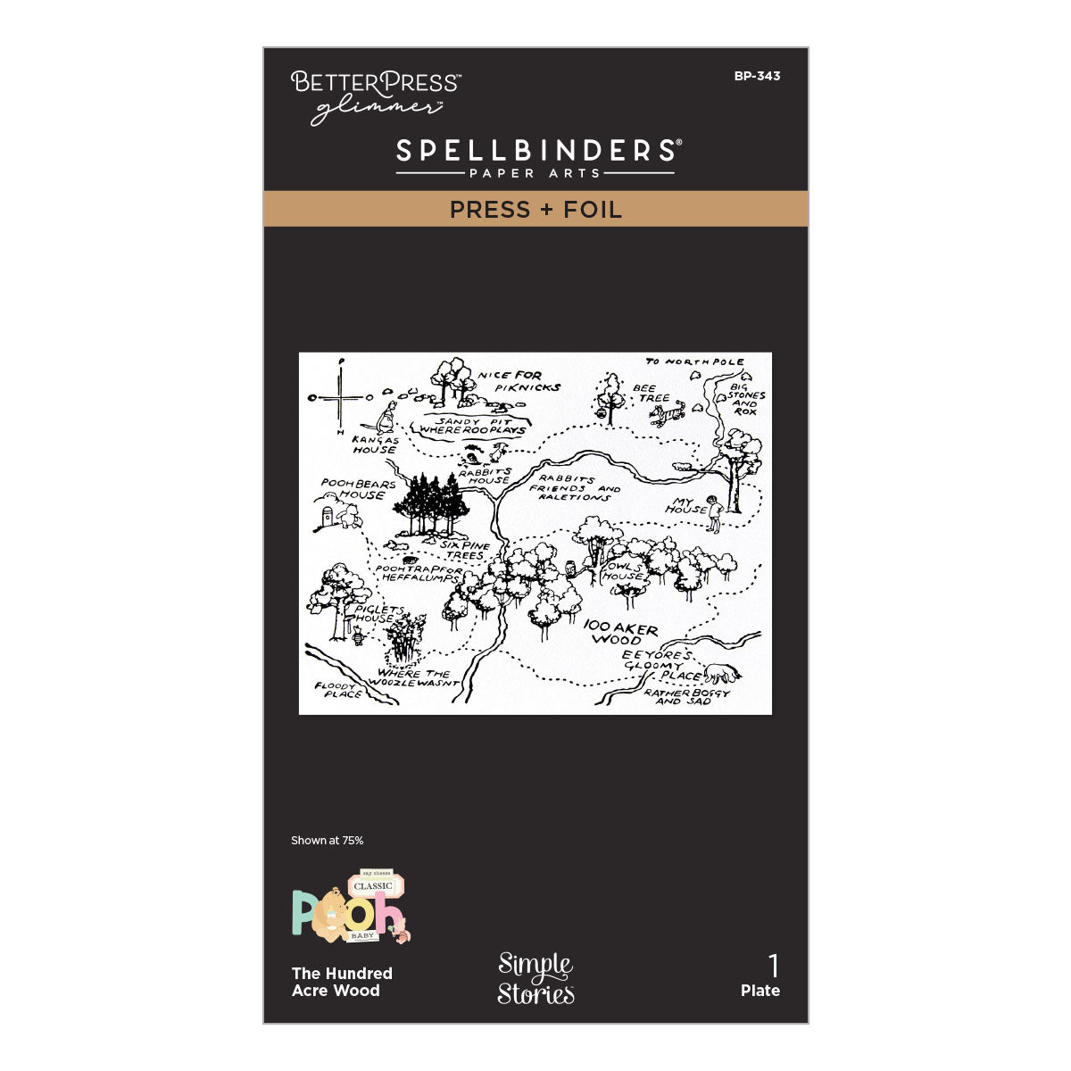The Hundred Acre Wood Press + Foil Plate is part of the Say Cheese Classic Pooh Baby Collection with Simple Stories. Create a stunning map of the Hundred Acre Wood by letterpressing or hot foiling the plate. Makes a wonderful backdrop for any of the sets in this collection!